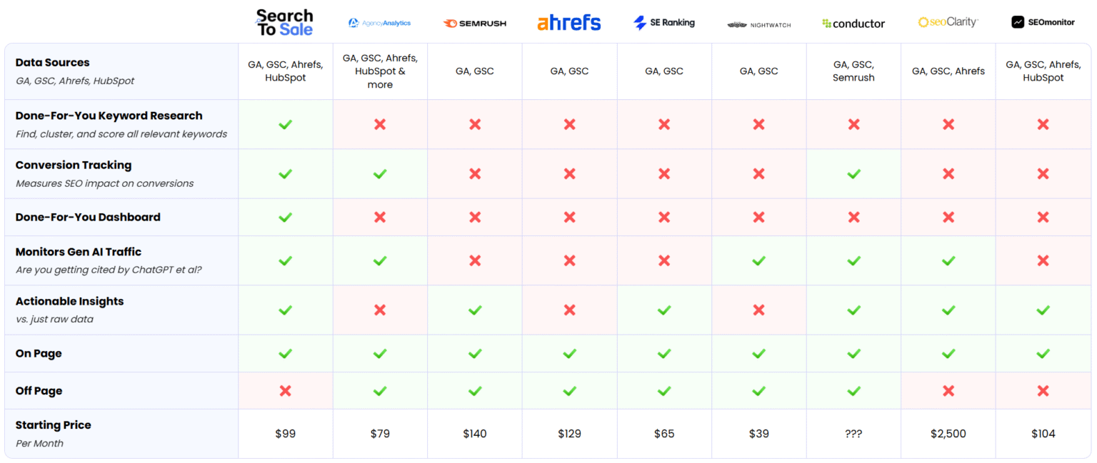 Search to Sale is built for agencies that need to prove their value fast. Instead of just tracking rankings, it helps agencies prioritize content that will generate the most ROI—ensuring that every SEO project makes a measurable impact.